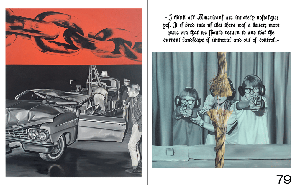 Sean Hamilton… When the pandemic hit big time, Hamilton moved into a trailer on his parents’ property in rural Idaho, set up a studio there, and thoroughly committed himself to improving his painting technique. The result is nothing short of impressive. The starting point might be nostalgic imagery from the heydays of the nuclear family, the topics he’s addressing though couldn’t be more contemporary, as his carefully arranged compositions are adding new complex narratives to Midwest Americana.