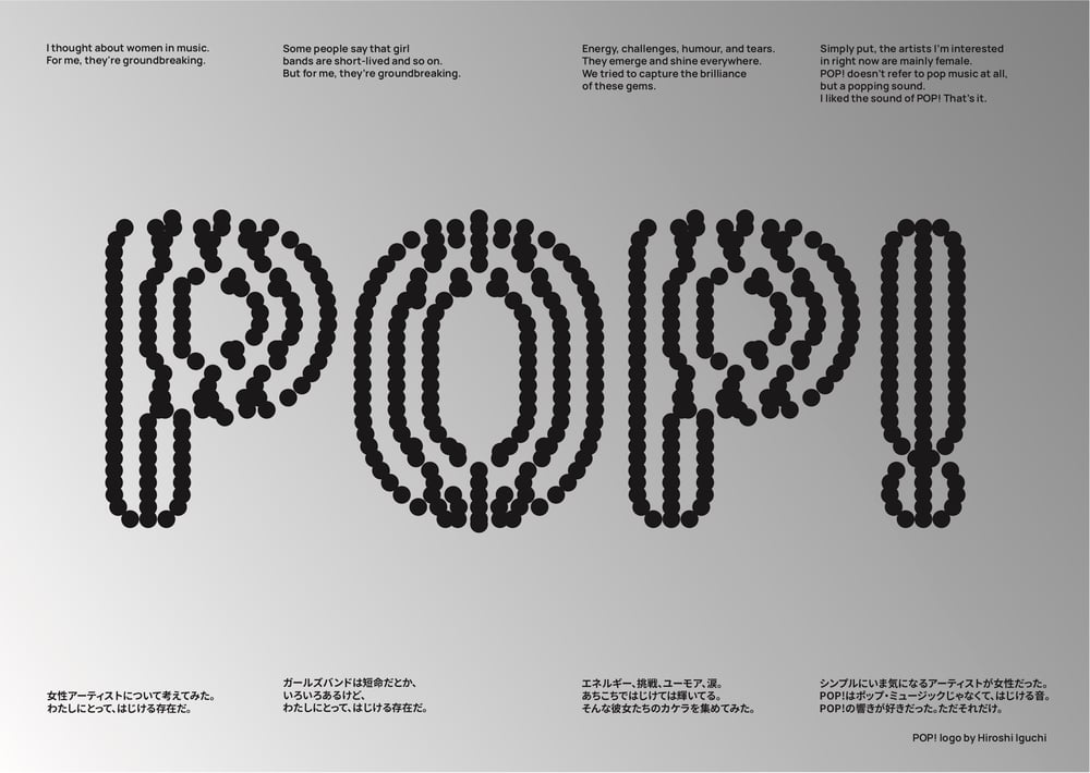 The cover artwork, logos and fonts using only dots were created by Hiroshi Iguchi, a graphic designer based in Tokyo. Drawn with a series of dots, he created a unique piece that depicts a fictional band consisting of some of the featured artists.