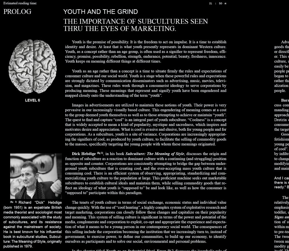 Speaking of: Youth isn’t simply this once in a lifetime event, it neither just appears from out of nowhere nor does it vanish on a specific day. It feels more like an ebb and flow kinda thing without its affiliated orderliness. The marketing machines make you want to believe that youth has no age whatsoever - but spitting from a bridge on driving cars in your midlife while wearing $200 sneakers isn’t as much fun as it used to be, really. The unique feature youth is offering is that you still believe to be able to built your life on a solid foundation of cheerfulness, confusion and health, regardless of the set of values your parents internalized, regardless of your observation that frustration and cynicism is seemingly deeply rooted in adult life. It’ll take just a lil’ longer to find out that a solid part of being happy is highly connected to your actual circumstances - and not necessarily to your disposition.